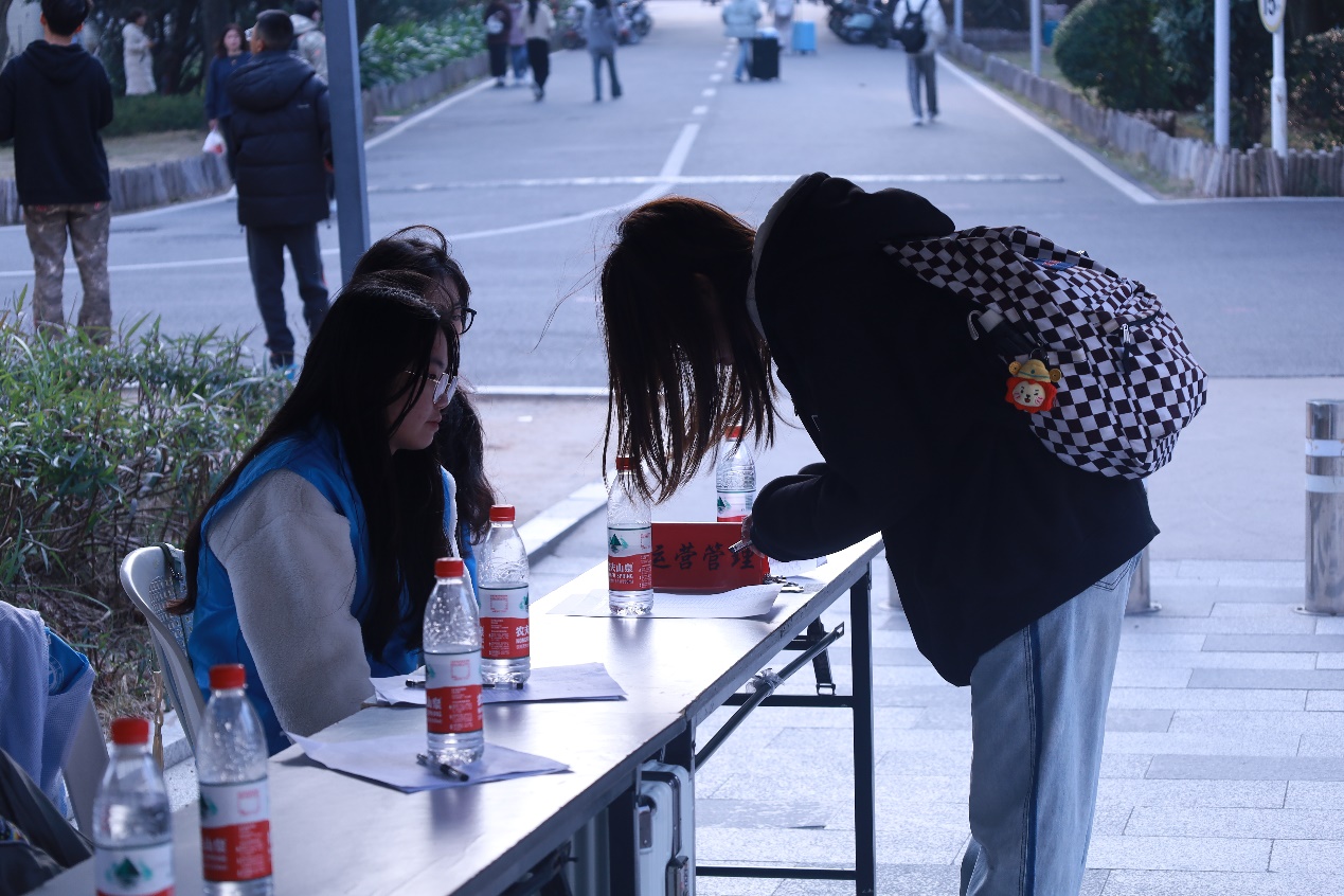 與此同時,學院領導也高度重視此次返校工作,親臨現(xiàn)場指導工作。他們詳細詢問了返校工作的進展情況,對志愿者們的辛勤付出表示了衷心的感謝,并對返校工作的有序開展給予了充分的肯定。領導的關懷與指導,為返校工作的順利進行注入了強大的動力。