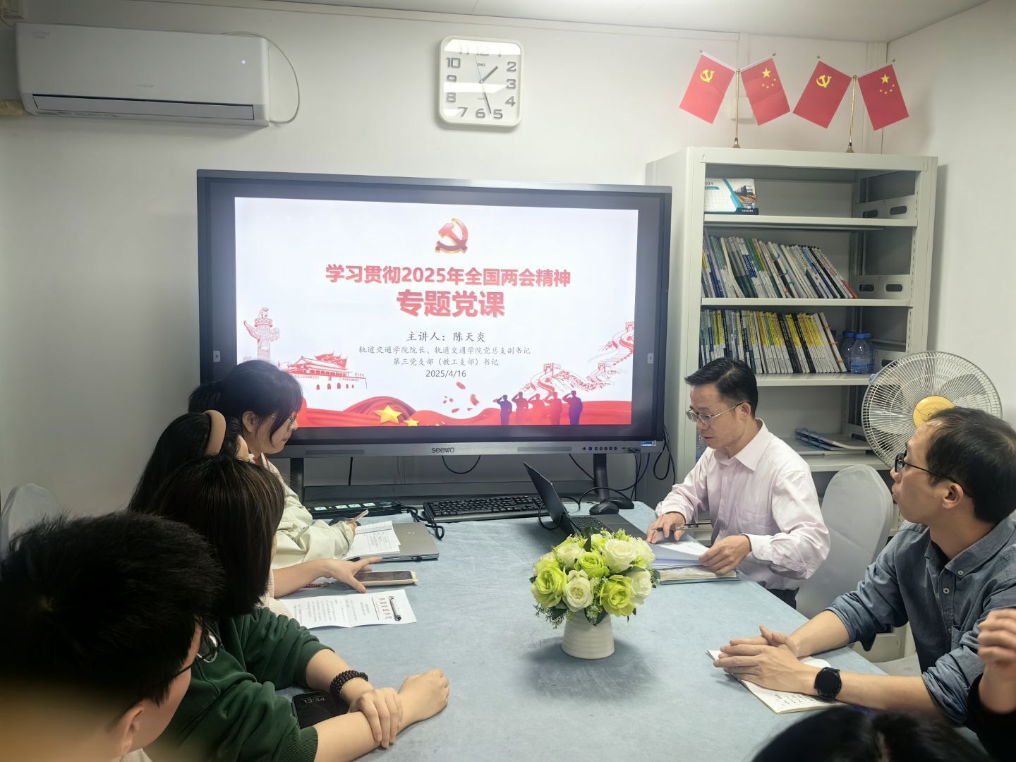 為深入學(xué)習(xí)貫徹 2025 年全國兩會(huì)精神,引領(lǐng)黨員把握時(shí)代脈搏,明確使命擔(dān)當(dāng),4月16日下午軌道交通學(xué)院第三黨支部在校友樓黨建室開展了一堂別開生面的書記上黨課。此次黨課由支部書記陳天炎同志主講,全體黨員齊聚一堂,共同汲取奮進(jìn)力量。
