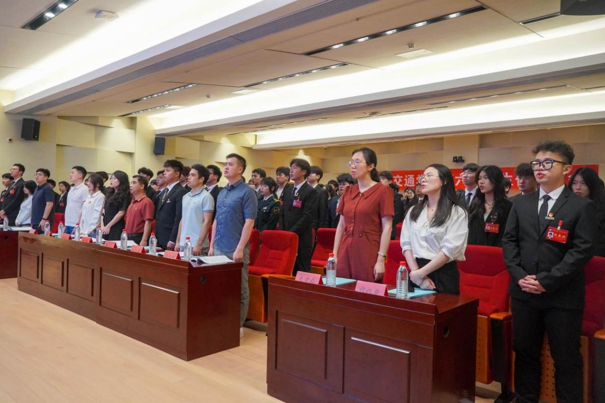 2025年5月19日晚,軌道交通學(xué)院第六次學(xué)生代表大會第一次全體會議在南區(qū)藝新樓304教室正式召開。出席會議的有軌道交通學(xué)院黨總支書記孫基、學(xué)院分團(tuán)委書記林欣欣、副書記及全體輔導(dǎo)員、第五屆學(xué)生會主席團(tuán)成員、各部門負(fù)責(zé)人和第六次學(xué)代會全體代表。本次大會由我院主席團(tuán)成員史金昊同學(xué)主持。在莊嚴(yán)的國歌聲中,全體參會人員肅立,也標(biāo)志著大會的序幕。
