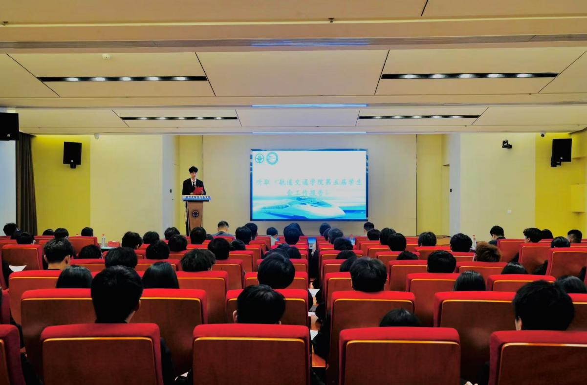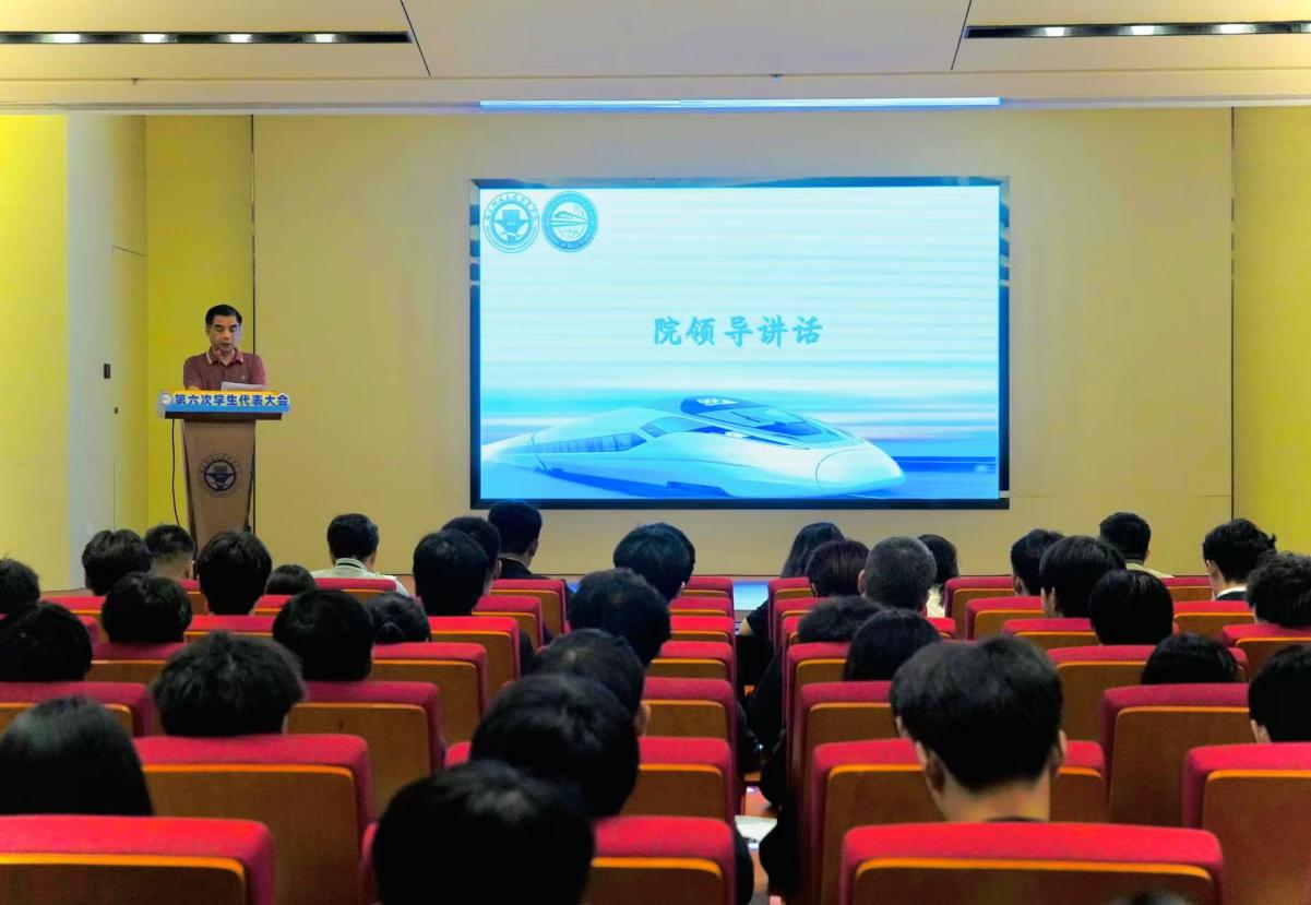 學(xué)生會執(zhí)行主席許曉捷在致辭中祝賀軌道交通學(xué)院第六次學(xué)代會召開及新一屆學(xué)生會選舉產(chǎn)生。并感謝蒞臨指導(dǎo)的老師及參會代表。指出軌道交通學(xué)院學(xué)生會始終是學(xué)生工作的標(biāo)桿之一,過去一年在志愿服務(wù)、學(xué)術(shù)競賽、學(xué)院賽事等領(lǐng)域亮點頻出。他建議新一屆學(xué)生會需明晰職責(zé)邊界,堅守服務(wù)宗旨,深入學(xué)生群體,精準(zhǔn)反饋需求,發(fā)揮師生“橋梁紐帶”作用;打造品牌亮點,強(qiáng)化文化引領(lǐng)。聚焦學(xué)風(fēng)建設(shè),依托“知常、守正、協(xié)同、精進(jìn)”院訓(xùn),營造“勤于求知、善于鉆研”的優(yōu)良學(xué)風(fēng),探索特色校園文化路徑。創(chuàng)新工作模式,定期總結(jié)反思,深化組織與機(jī)制改革,強(qiáng)化自我教育、完善管理監(jiān)督體系,推動學(xué)生工作專業(yè)化、精細(xì)化,提升成員綜合素養(yǎng)與團(tuán)隊能力。