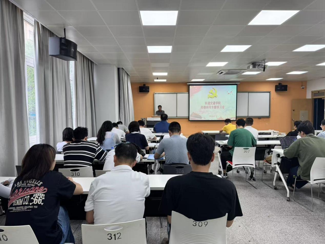 2025年5月26日,軌道交通學(xué)院組織全體教職工開(kāi)展師德師風(fēng)學(xué)習(xí)警示教育專題會(huì),深入學(xué)習(xí)《新時(shí)代高校教師職業(yè)行為十項(xiàng)準(zhǔn)則》及師德失范典型案例,強(qiáng)化教師紀(jì)律意識(shí)與職業(yè)素養(yǎng),本次會(huì)議由軌道交通學(xué)院黨總支書(shū)記孫基主持。