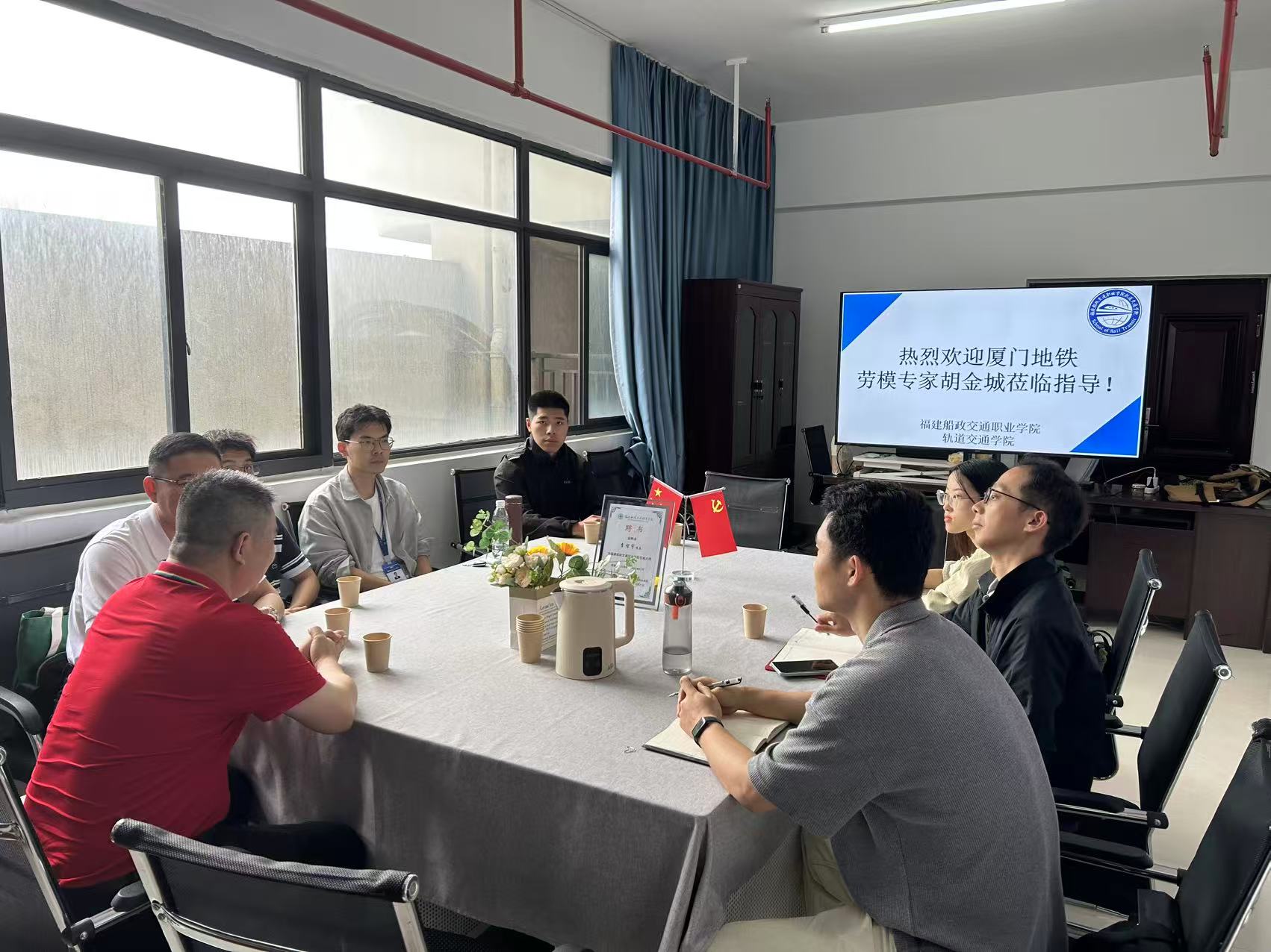 近日,全國技術(shù)能手、廈門市“胡金城技能大師工作室”領(lǐng)辦人、“行業(yè)工匠”、“五一勞動獎?wù)隆鲍@得者、廈門地鐵運(yùn)營有限公司風(fēng)水電高級技師胡金城一行蒞院參觀交流。學(xué)院領(lǐng)導(dǎo)班子、李智宇技能大師工作室負(fù)責(zé)人和骨干教師參加了考察交流。