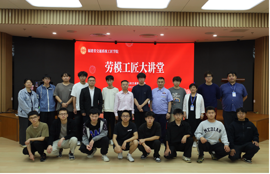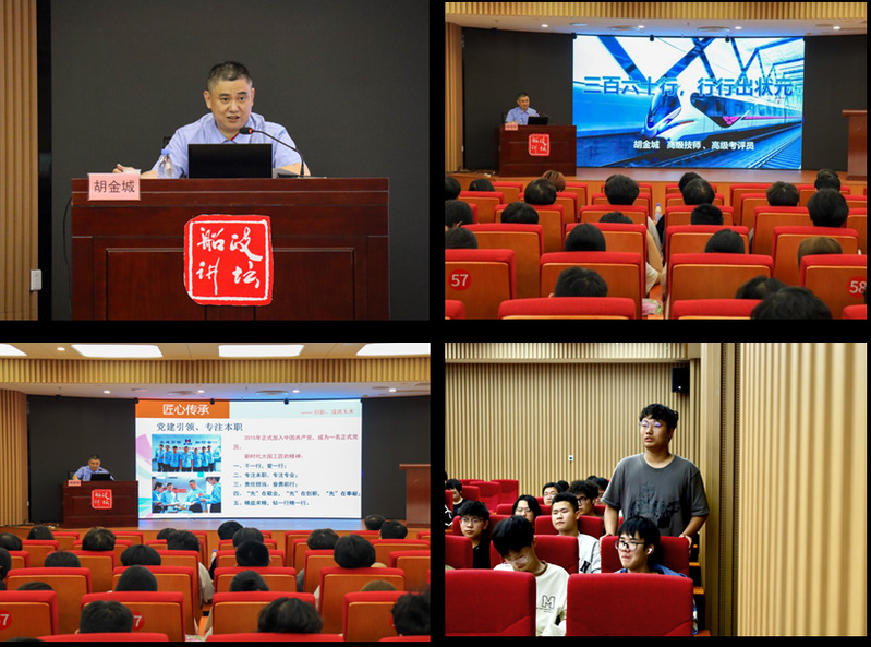 參觀結(jié)束后,胡金城大師為軌道交通學(xué)院的全體師生作了題為《三百六十行,行行出狀元》的勞模工匠講座。胡金城大師結(jié)合自身多年一線工作經(jīng)驗(yàn),分享了軌道交通行業(yè)的技術(shù)發(fā)展趨勢、崗位技能要求及職業(yè)成長路徑。他勉勵師生夯實(shí)專業(yè)基礎(chǔ)、錘煉實(shí)操能力,以適應(yīng)行業(yè)智能化、數(shù)字化發(fā)展的新需求。在互動環(huán)節(jié),胡金金城大師耐心解答了師生關(guān)于技能提升、創(chuàng)新實(shí)踐和職業(yè)規(guī)劃等問題,現(xiàn)場氣氛熱烈,得到了現(xiàn)場師生的一致好評。