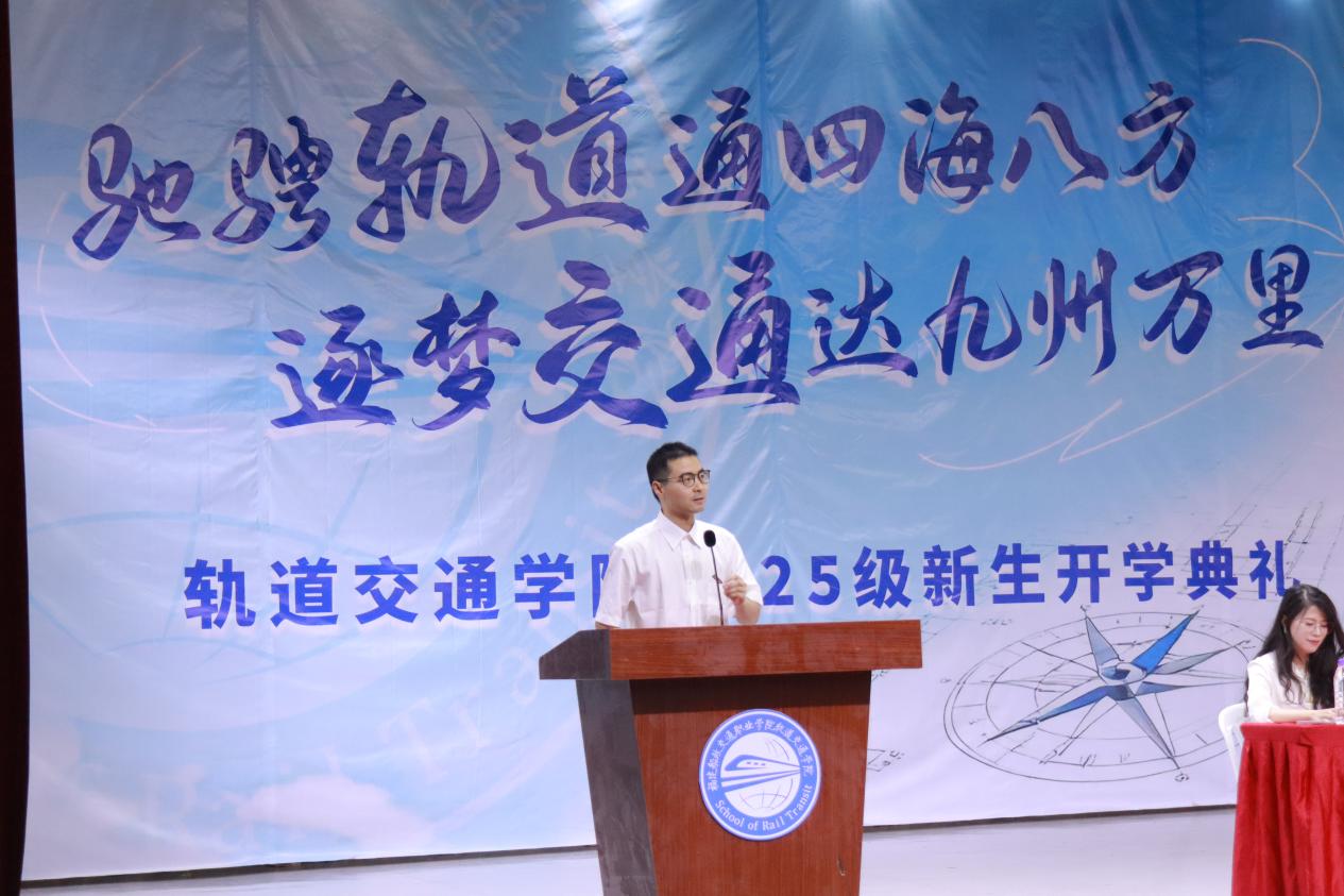 “希望同學們在大學期間,結交兩個‘摯友’——一個是操場,一個是圖書館?!避壍澜煌▽W院院長陳天炎在致辭中,用親切的比喻為新生指引方向。他鼓勵同學們走出宿舍,在操場揮灑汗水、強健體魄;走進圖書館,在書頁間汲取知識、開闊眼界,以健康的身心與扎實的學識,為未來的軌道事業(yè)打下堅實基礎。