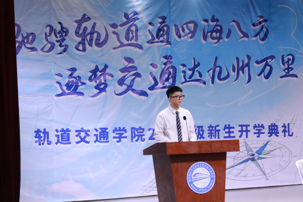 新生代表林智賢則帶著同齡人的共鳴,道出了25級新生的心聲。他分享了自己選擇軌道專業(yè)的初心,表達(dá)了對未來學(xué)習(xí)生活的期待,并代表全體新生承諾:將以勤勉踏實(shí)的態(tài)度,學(xué)好專業(yè)知識,不負(fù)師長期望,努力成長為能為軌道行業(yè)貢獻(xiàn)力量的青年。
