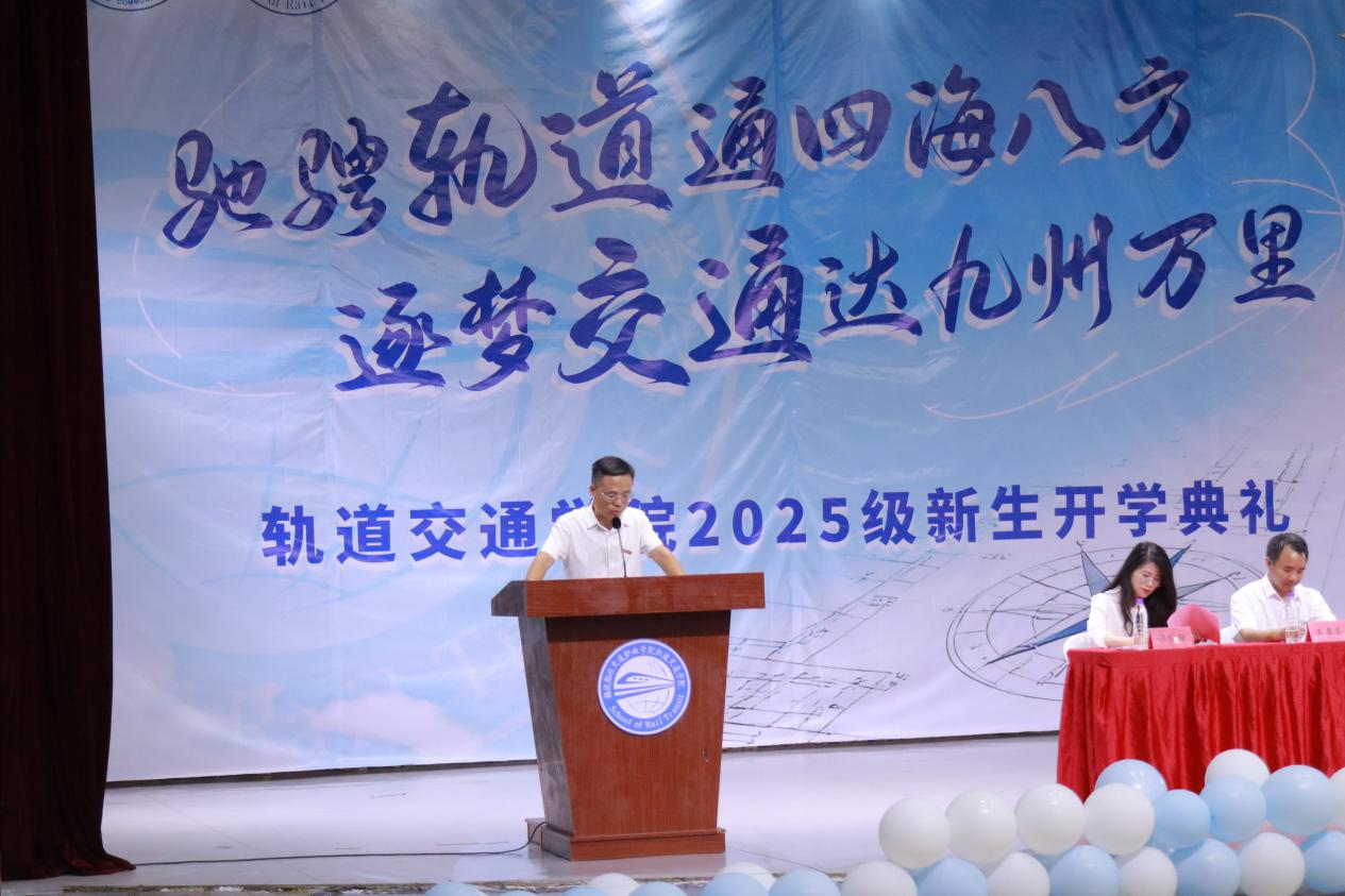 “希望同學(xué)們在大學(xué)期間,結(jié)交兩個‘摯友’——一個是操場,一個是圖書館。”軌道交通學(xué)院院長陳天炎在致辭中,用親切的比喻為新生指引方向。他鼓勵同學(xué)們走出宿舍,在操場揮灑汗水、強(qiáng)健體魄;走進(jìn)圖書館,在書頁間汲取知識、開闊眼界,以健康的身心與扎實(shí)的學(xué)識,為未來的軌道事業(yè)打下堅(jiān)實(shí)基礎(chǔ)。