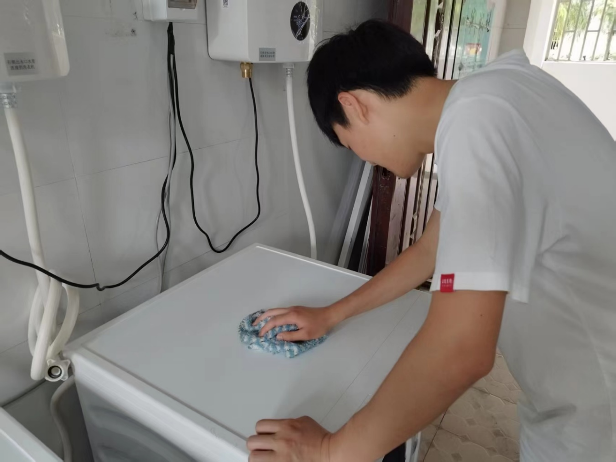 每月“消殺日”的流程嚴謹而規(guī)范。志愿者們首先對洗衣機外部進行徹底擦拭,清除表面灰塵與污漬;接著嚴格按照科學(xué)比例調(diào)配消毒液,注入內(nèi)筒后運行完整的清潔程序,確保消毒劑充分接觸每個角落。整個過程,從個人防護到操作規(guī)范,都有明確標準,杜絕安全隱患。