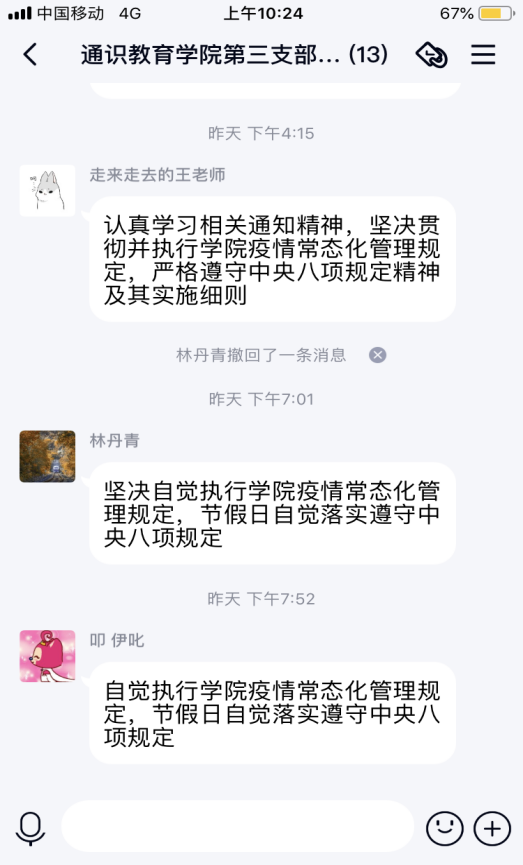為加強(qiáng)廉政建設(shè),持之以恒正風(fēng)肅紀(jì),嚴(yán)明廉潔過(guò)節(jié)各項(xiàng)紀(jì)律要求,根據(jù)學(xué)校紀(jì)委辦通知精神,通識(shí)教育學(xué)院以支部黨員大會(huì)、教研室例會(huì)等形式,組織廣大黨員和教師認(rèn)真學(xué)習(xí)了學(xué)校紀(jì)委辦公室《關(guān)于做好2021年度元旦春節(jié)期間正風(fēng)肅紀(jì)工作的通知》。主要采用線上加線下相結(jié)合方式進(jìn)行學(xué)習(xí),通過(guò)學(xué)習(xí),進(jìn)一步提高了政治站位,強(qiáng)化了底線意識(shí),提升以身作則知止敬畏的行動(dòng)自覺(jué),進(jìn)一步增強(qiáng)作風(fēng)建設(shè)的自覺(jué)性和堅(jiān)定性。黨員和教師均表示要以更高標(biāo)準(zhǔn)、更嚴(yán)要求落實(shí)中央八項(xiàng)規(guī)定精神、糾治“四風(fēng)”,以風(fēng)清氣正的良好氛圍為新階段作風(fēng)建設(shè)開(kāi)好頭、起好步;堅(jiān)決杜絕形式主義,官僚主義,認(rèn)真學(xué)習(xí)省紀(jì)委公開(kāi)曝光的“四風(fēng)”典型問(wèn)題,嚴(yán)守紀(jì)律,堅(jiān)持“糾四風(fēng)”、樹(shù)新風(fēng),進(jìn)一步強(qiáng)化以人民為中心的服務(wù)理念,主動(dòng)服務(wù)基層,服務(wù)師生;努力營(yíng)造崇廉尚儉的節(jié)日氛圍,確保務(wù)實(shí)、節(jié)儉、文明、清廉過(guò)好“兩節(jié)”。