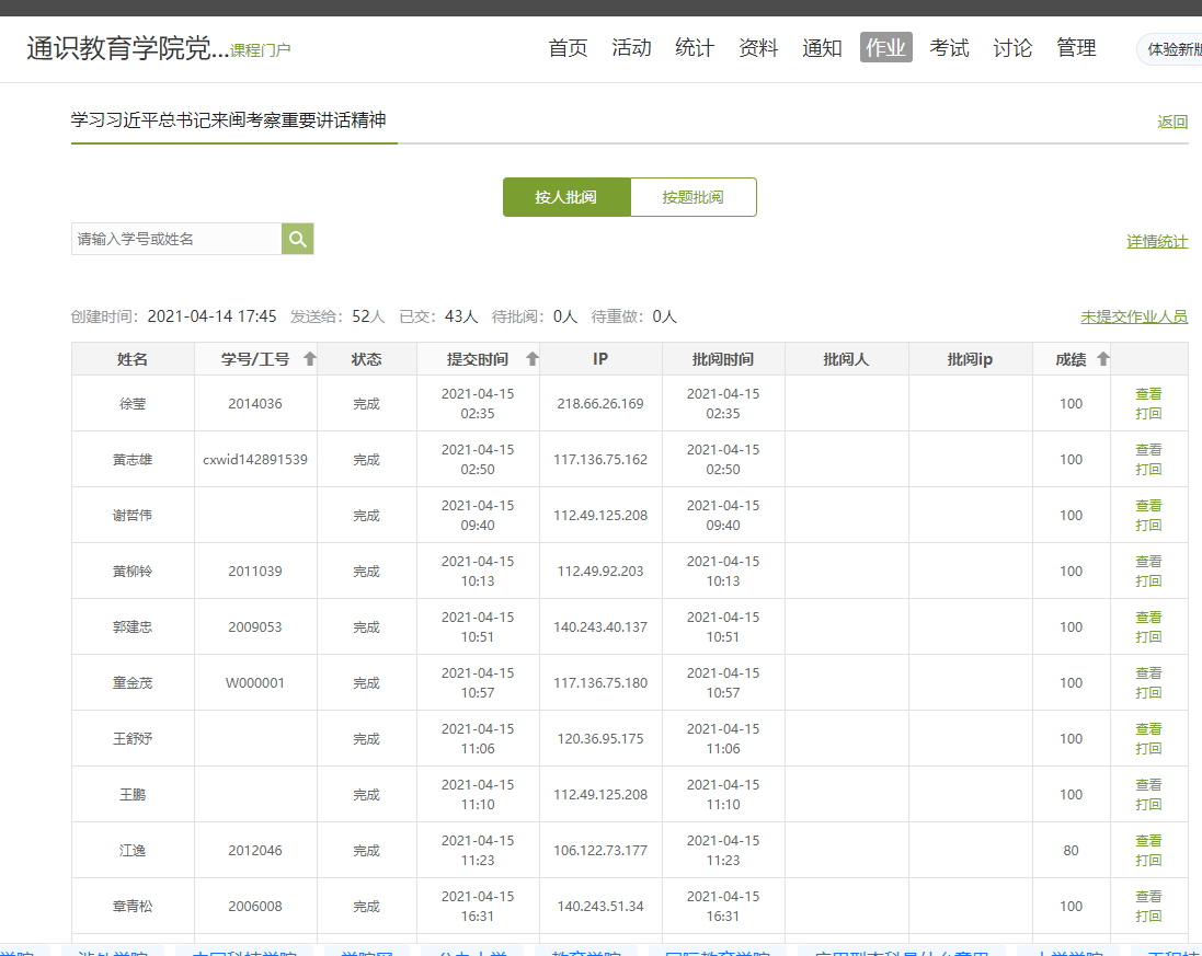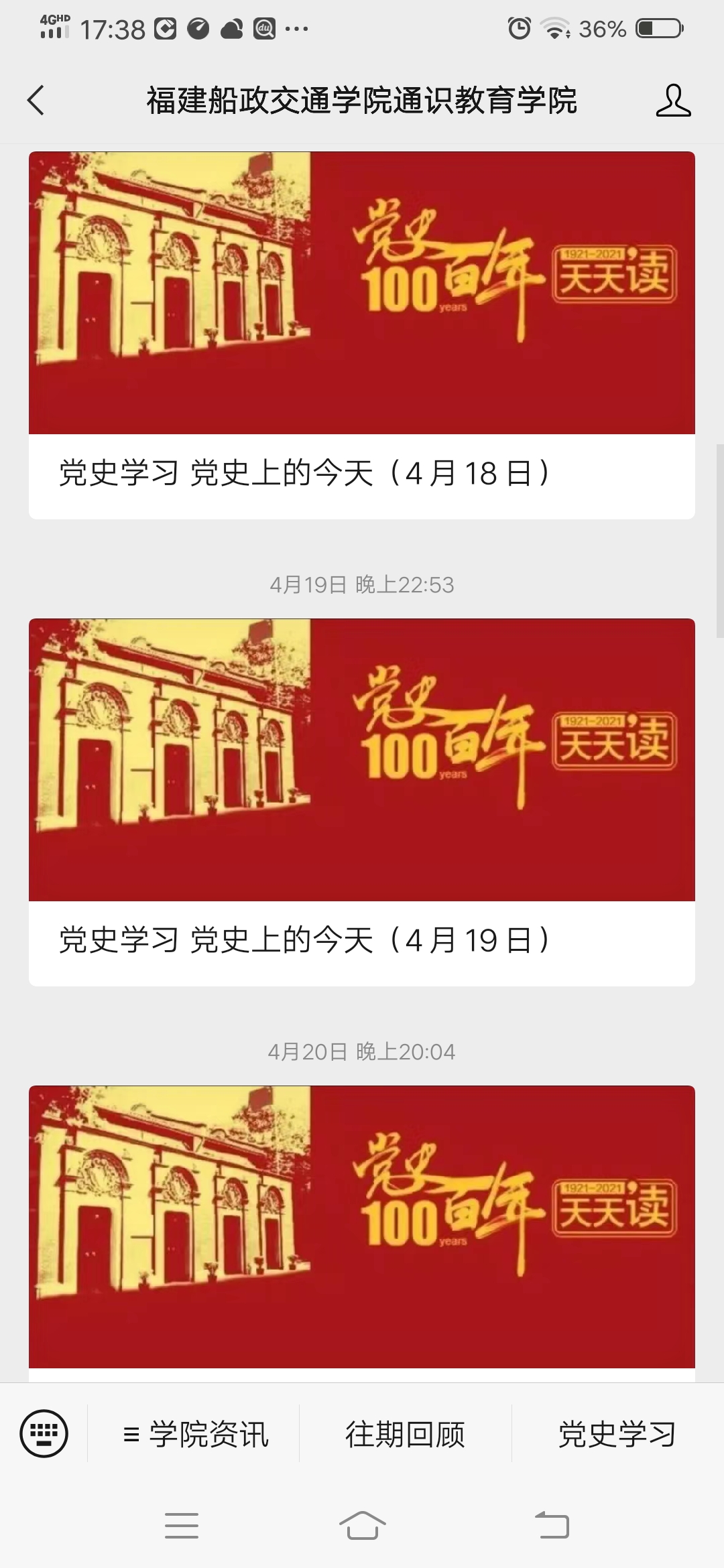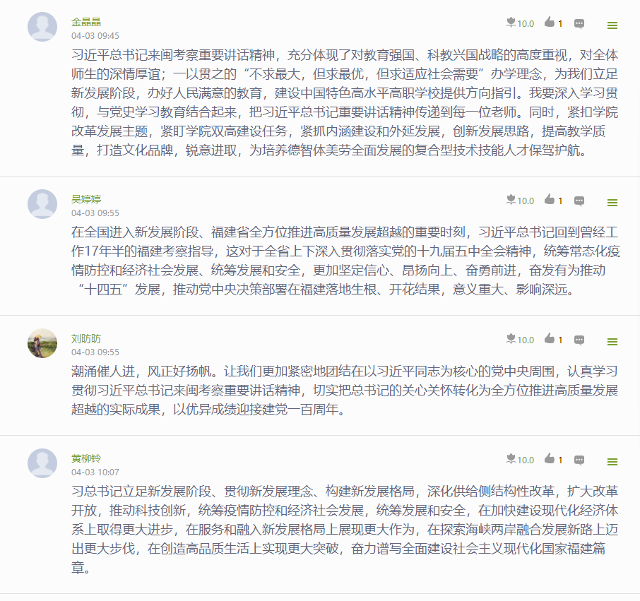 通識(shí)教育學(xué)院黨總支創(chuàng)新黨史學(xué)習(xí)教育形式,利用“學(xué)習(xí)通”線上黨建平臺(tái)的討論和作業(yè)等模塊,開展黨史學(xué)習(xí)教育,以及黨史和習(xí)近平總書記來閩考察重要講話精神應(yīng)知應(yīng)會(huì)線上測試,增強(qiáng)學(xué)習(xí)實(shí)效。同時(shí),每日在網(wǎng)頁和微信公眾號(hào)上推送“黨史上的今天”和黨史學(xué)習(xí)相關(guān)內(nèi)容,通報(bào)總支黨員前日總支“學(xué)習(xí)強(qiáng)國”積分情況,督促每位教師認(rèn)真學(xué)習(xí)。