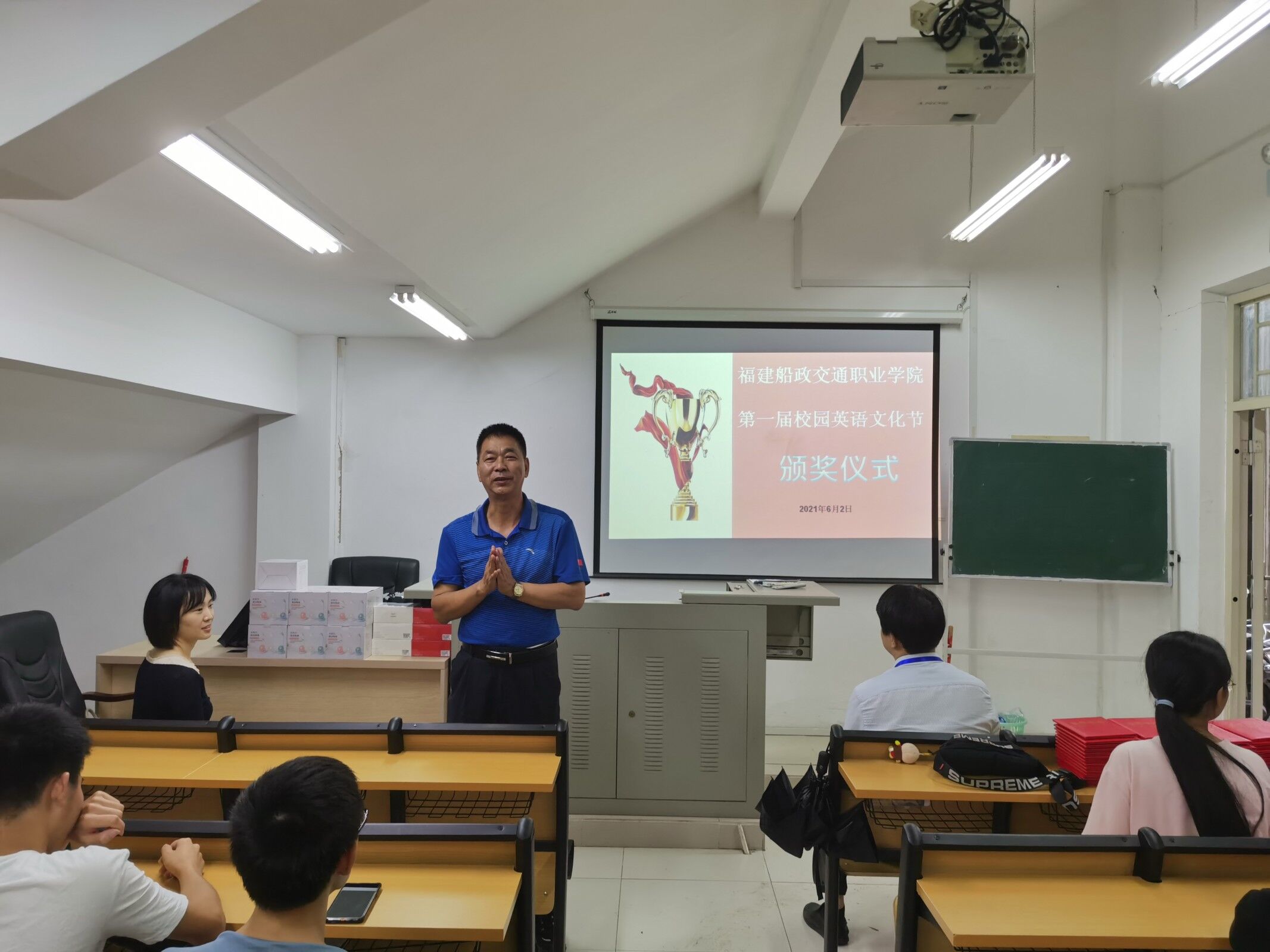 2021年6月2日,通識(shí)教育學(xué)院在多媒體教室召開福建船政交通職業(yè)學(xué)院第一屆校園英語文化節(jié)頒獎(jiǎng)儀式,通識(shí)教育學(xué)院方儒欽院長、金晶晶副院長和英語教研室吳菲菲主任出席此次頒獎(jiǎng)儀式,并為獲獎(jiǎng)選手們頒獎(jiǎng)。