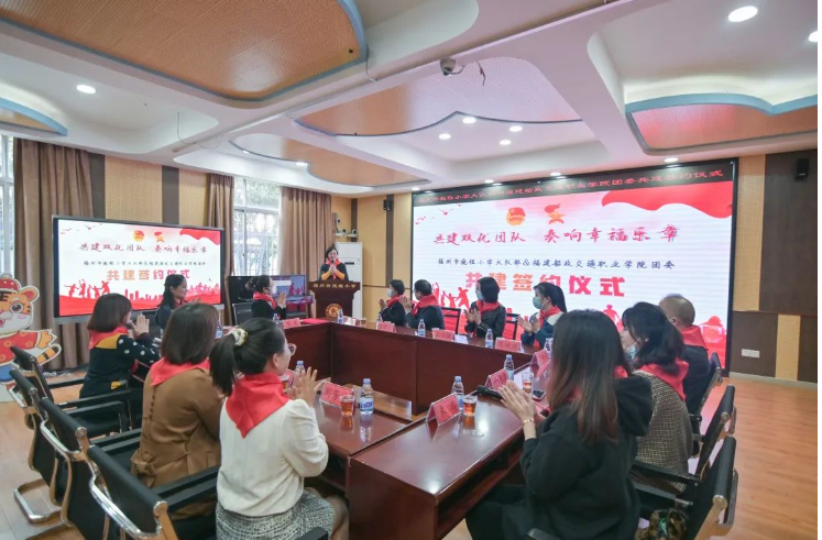 2022年3月10日下午,“共建雙優(yōu)團(tuán)隊(duì) 奏響幸福樂章”——福州市施程小學(xué)大隊(duì)部與福建船政交通職業(yè)學(xué)院團(tuán)委共建簽約儀式在施程小學(xué)舉行。簽約儀式由施程小學(xué)和我校團(tuán)委牽頭組織,我校黨委副書記陳宜大、工會(huì)、團(tuán)委、關(guān)工委等相關(guān)部門出席了簽約儀式,通識(shí)教育學(xué)院教師于曉凌作為社團(tuán)指導(dǎo)教師代表參加了簽約儀式。