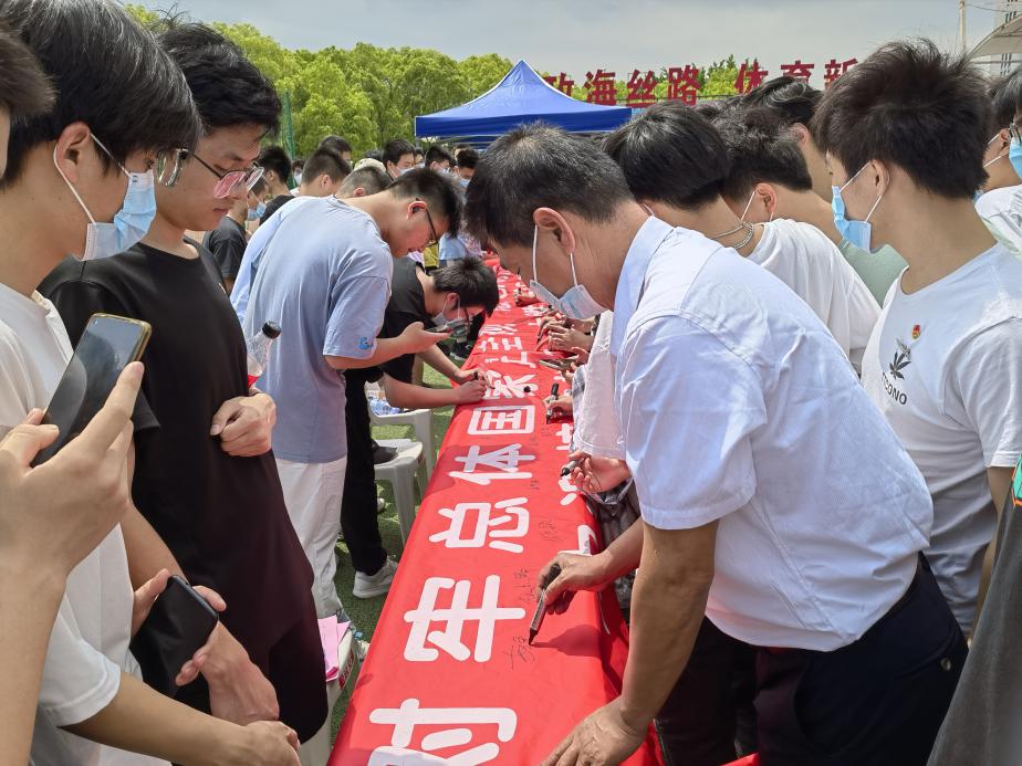 活動中,學(xué)生代表張政同學(xué),帶領(lǐng)大家進(jìn)行“爭做新時代國家安全的鋼鐵衛(wèi)士宣誓”。活動最后,進(jìn)行國家安全教育日簽名儀式,師生們有序走向簽字席簽下自己作為踐行者的姓名。