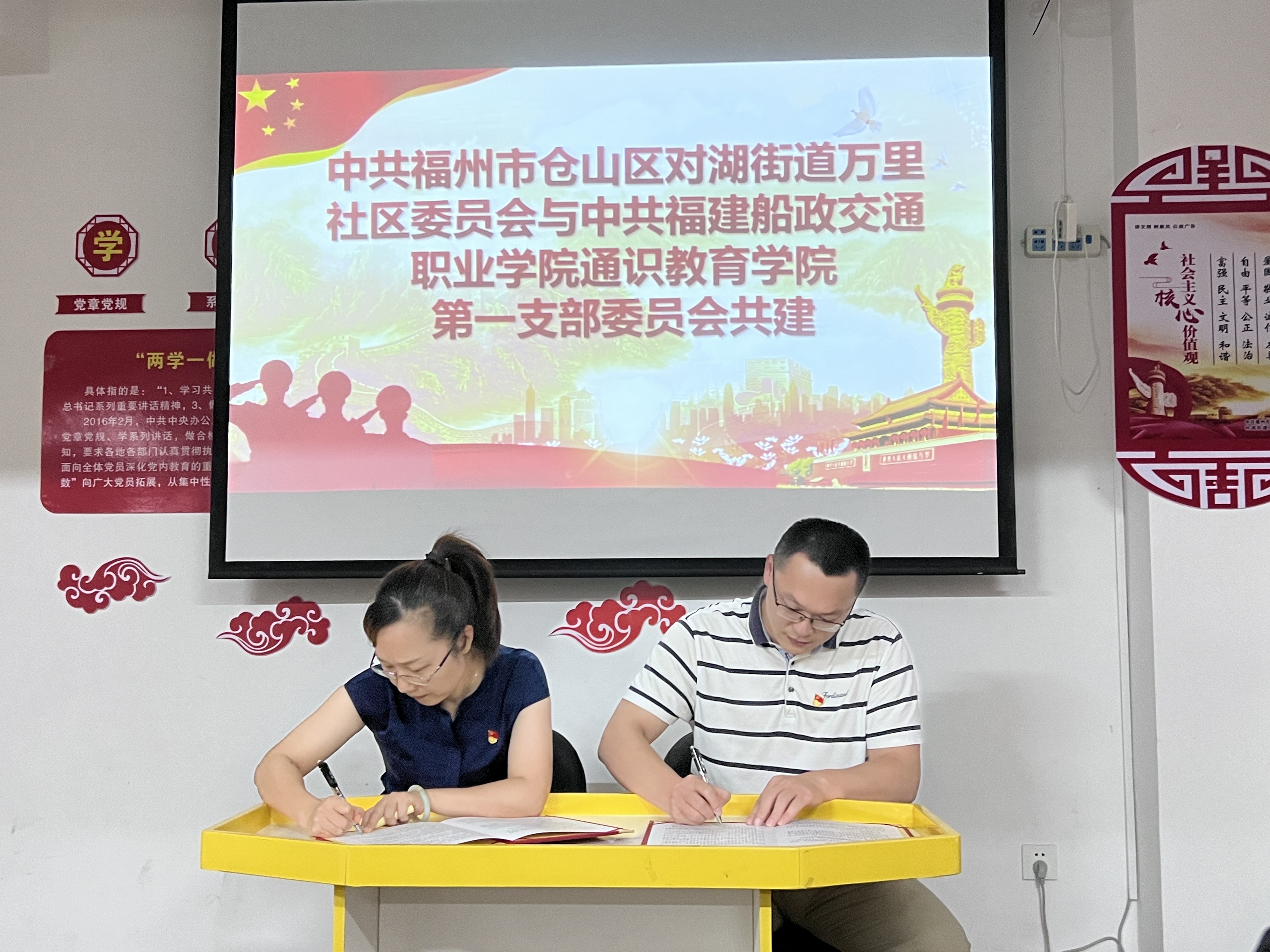 接著,雙方黨員重溫入黨誓詞,過“政治生日”,并開展《閩山閩水物華新--習(xí)近平福建足跡》等系列教材交流。雙方交流會上,倉山區(qū)萬里社區(qū)主任林玉梅回顧黨的百年光輝歷程,要求社區(qū)黨員要深入學(xué)習(xí)習(xí)近平新時代中國特色社會主義思想,以更加奮發(fā)有為的精神狀態(tài)和求真務(wù)實的工作作風(fēng)做好社區(qū)工作。通識教育學(xué)院黨總支副書記金晶晶要求總支黨員們要結(jié)合省委部署的“提高效率、提升效能、提增效益”行動,示范帶動,以“馬上就辦、真抓實干”的工作作風(fēng),抓緊每一天、干好每一月,奮力推動各項工作提速增效。最后,雙方黨員合唱《沒有共產(chǎn)黨就沒有新中國》。會后,通識教育學(xué)院第一黨支部書記沈焰焰與倉山萬里社區(qū)黨委簽訂黨建共建協(xié)議,建立黨員共育、活動共聯(lián)、資源共享的黨建共建機制。