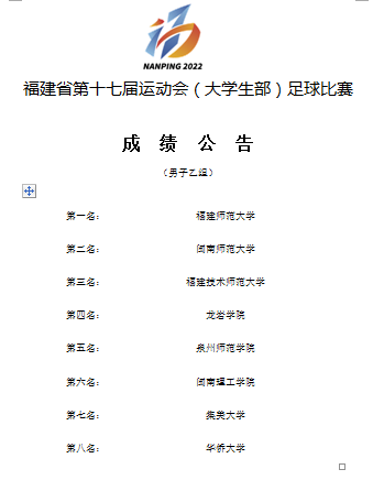 7月14日,福建省第十七屆運(yùn)動(dòng)會(huì)(大學(xué)生部)足球比賽(男子乙組)在我校圓滿落幕。該組別共有來(lái)自全省11支高校代表隊(duì)(體育專業(yè))參賽。
