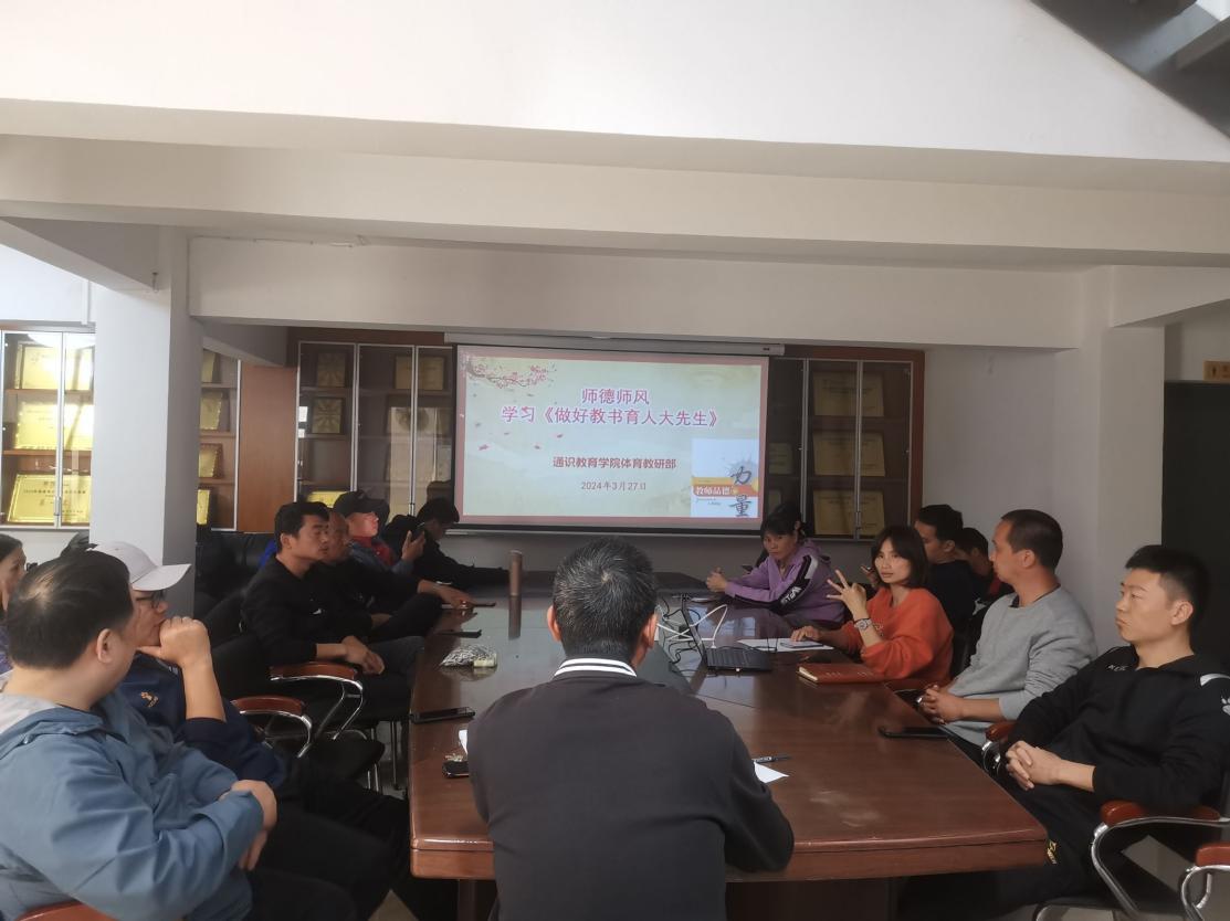 3月27日下午,通識教育學(xué)院各教研室組織學(xué)習(xí)《中華人民共和國愛國主義教育法》、《事業(yè)單位工作人員處分規(guī)定》和《做好教書育人大先生》,引導(dǎo)全體教師提高個人綜合素質(zhì),夯實(shí)教育教學(xué)基本功,進(jìn)一步加強(qiáng)新時代愛國主義教育,傳承和弘揚(yáng)愛國主義精神。