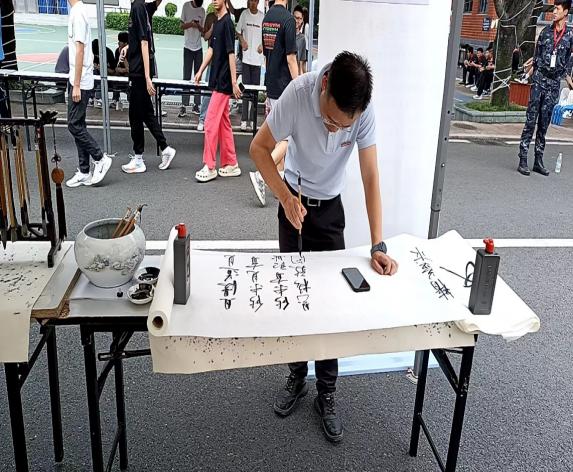 活動(dòng)展示學(xué)生書法作品,在場師生贊賞不已,紛紛表示要學(xué)習(xí)書法技藝,成為新時(shí)代書法藝術(shù)的傳承者。在活動(dòng)現(xiàn)場,師生共同在宣紙上勁筆書寫青春風(fēng)采,呈現(xiàn)船政學(xué)子扎實(shí)的書法功底,彰顯了對(duì)書法藝術(shù)的獨(dú)特見解和創(chuàng)新精神,體現(xiàn)對(duì)傳統(tǒng)文化的熱愛和追求,展示“工匠”精神。