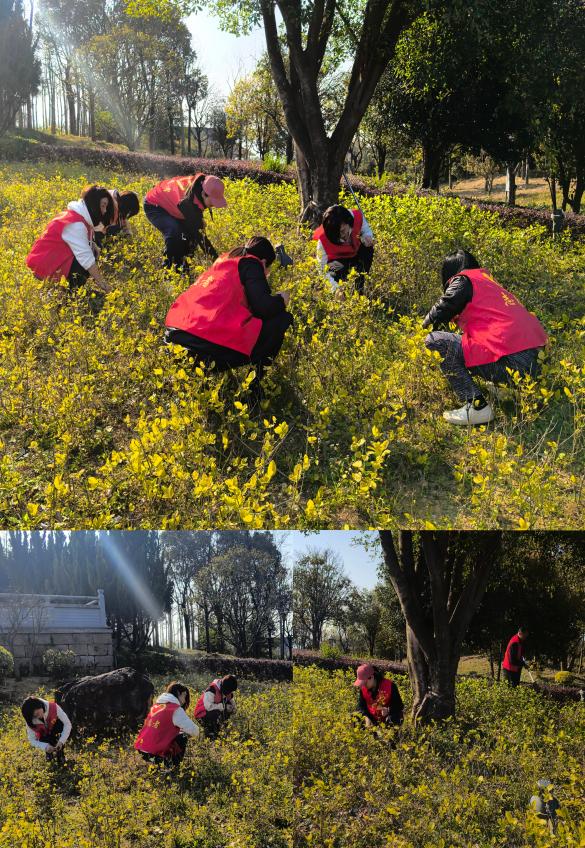 活動伊始,通識教育學院黨總支書記陳火城做動員講話,強調(diào)黨員要立足實際、服務群眾,將理論學習轉(zhuǎn)化為實踐行動。全體黨員身著紅色志愿馬甲,攜帶掃帚、垃圾夾、垃圾袋等工具,沿步道清掃落葉、撿拾紙屑和塑料瓶;深入綠化帶,徒手拔除雜草、整理枯枝,并對草坪進行平整維護。黨員們分工協(xié)作,經(jīng)過兩小時的辛勤勞動,整治綠化區(qū)域500余平方米,公園環(huán)境煥然一新。