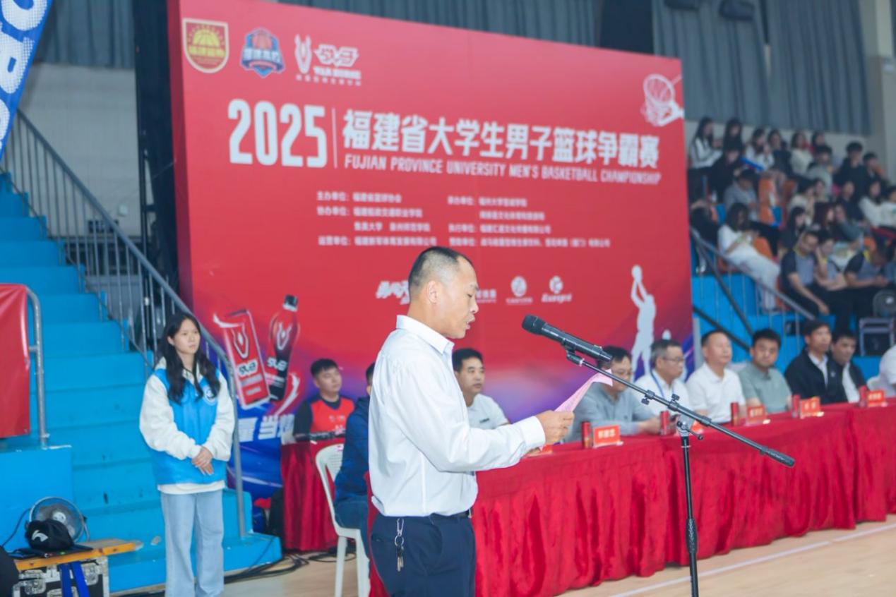 2025年福建省大學生男子籃球爭霸賽在4月24日晚在我校舉行開幕式。福建省籃球協(xié)會副秘書長何瑋翔、福建省公安體育協(xié)會秘書長朱凱、福建船政交通職業(yè)學院副院長陳常暉、福建理工大學體育部主任林長地、福州大學至誠學院黨委副書記林文麟、福建師范大學公共體育部副主任鐘曉波、福建警察學院戰(zhàn)術(shù)系主任林陽東、福建船政交通職業(yè)學院通識教育學院院長郭建忠、閩侯縣文化體育和旅游局局長張其標、福建師范大學體育科學院籃球教研室主任、本次比賽裁判長張水順等領(lǐng)導和嘉賓出席了開幕式。