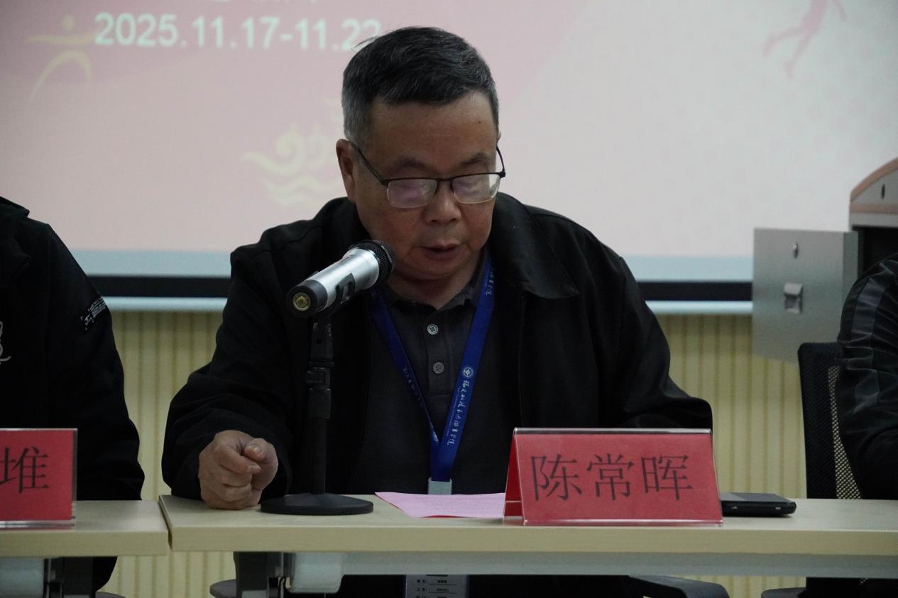 第一階段議程中,陳常暉副院長(zhǎng)代表學(xué)校致歡迎辭,對(duì)與會(huì)領(lǐng)導(dǎo)、嘉賓及各參賽隊(duì)伍表示熱烈歡迎。他介紹了我校作為國(guó)家示范性高職院校和“雙高計(jì)劃”建設(shè)單位的辦學(xué)成果,并介紹了我校“以體育德、以賽育人、專技相長(zhǎng)”的體育育人理念,致力于將體育精神融入人才培養(yǎng)全過(guò)程。陳副院長(zhǎng)表示,學(xué)校高度重視本次賽事協(xié)辦工作,已組建專項(xiàng)工作組,全面做好場(chǎng)地維護(hù)、后勤保障與安全服務(wù),全力營(yíng)造公平、安全、舒適的競(jìng)賽環(huán)境。他期待各參賽隊(duì)伍恪守體育道德,尊重規(guī)則、尊重對(duì)手、尊重裁判,展現(xiàn)當(dāng)代大學(xué)生的良好精神風(fēng)貌。