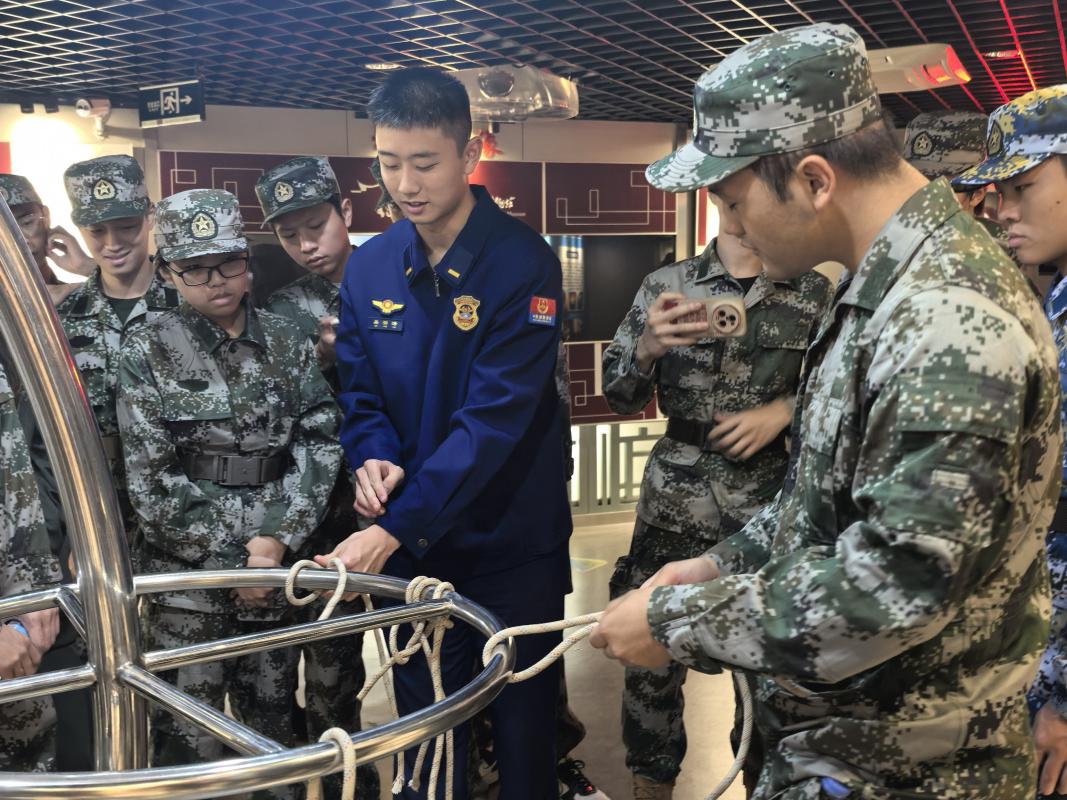 活動中,同學(xué)們依次參觀了消防器材庫、禮服室和隊史館,通過裝備體驗、禮儀感知與歷史追溯,深切感受這支隊伍背后的忠誠與榮光。裴隊長結(jié)合救援實例與國旗故事,為同學(xué)們上了一堂真實動人的使命課。隊員們還現(xiàn)場指導(dǎo)學(xué)生掌握救生繩結(jié)等自救技能,并贈送紀(jì)念禮物,傳遞安全關(guān)懷。
