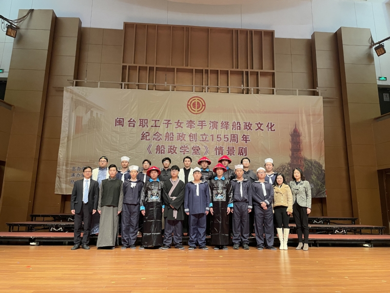 12月23日,在船政創(chuàng)立155周年之際,由福建省總工會(huì)、中國(guó)致公黨福建省委員會(huì)、中工網(wǎng)、福建船政交通職業(yè)學(xué)院、馬尾船政研究會(huì)共同主辦的《船政學(xué)堂》情景劇在福建大劇院隆重上演?!洞W(xué)堂》是與在閩臺(tái)灣職工子共同攜手演繹賡續(xù)船政百年初心,唱響“閩臺(tái)一家親”的主題樂(lè)章。福建省總工會(huì)領(lǐng)導(dǎo)柳公立副主席,中國(guó)致公黨福建省委員會(huì)副主委吳棉國(guó)、福建船政交通職業(yè)學(xué)院黨委副書記陳宜大、馬尾船政研究會(huì)會(huì)長(zhǎng)陳悅,省臺(tái)港澳辦、中工網(wǎng)等相關(guān)單位領(lǐng)導(dǎo)出席活動(dòng)。