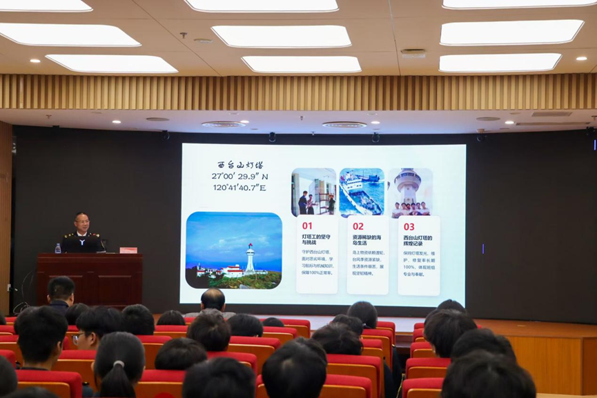 互動環(huán)節(jié)結(jié)束后,福州航標處馮振剛老師從航海專業(yè)的角度用形象生動的案例向在場觀眾詳細介紹了航標處的運作情況。他指出要把在課堂上學到的理論與實際相結(jié)合,要大力弘揚勞模精神、勞動精神、工匠精神,不斷提升自身技術(shù)技能水平,以適應科技革命和產(chǎn)業(yè)變革的需要,為實現(xiàn)中華民族偉大復興的中國夢貢獻自己的青春力量。