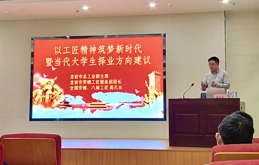 為深入學(xué)習(xí)宣傳貫徹黨的二十屆三中全會(huì)精神,大力弘揚(yáng)勞模精神、勞動(dòng)精神和工匠精神,引導(dǎo)廣大師生牢固樹立正確的人生觀、價(jià)值觀和勞動(dòng)觀,12月4日下午,汽車學(xué)院在福船園藝新樓304會(huì)議室舉行“勞動(dòng)光榮·聲動(dòng)校園”2024年福建省“勞模工匠(名師)進(jìn)校園---走進(jìn)船政”系列活動(dòng),本次活動(dòng)邀請到全國勞動(dòng)模范、享受國務(wù)院政府特殊津貼專家、福建新龍馬汽車股份有限公司高孔長先生作主題為《以工匠精神筑夢新時(shí)代暨當(dāng)代大學(xué)生擇業(yè)方向建議》的專題講座,汽車學(xué)院全體教職工和學(xué)生百余人參加。