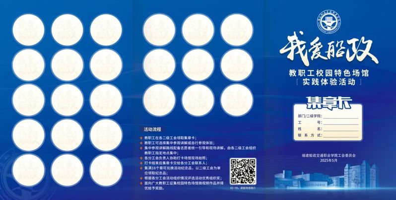 活動以“創(chuàng)新船政、質量船政、文化船政、開放船政”理念為牽總,學院校史館、三全育人館、嚴復史績館、黨建思政船政文化研學中心“三館一中心”為組團,青年服務中心、“一站式”學生服務中心、職工之家“兩區(qū)三陣地”為輻射,航海技術、安全技術與管理兩大“雙高”專業(yè)群為龍頭,交通土建、汽車運用、通用航空、軌道交通、交通運輸服務、機械與智能制造、信息技術與智慧交通為支撐的9大現(xiàn)代綜合立體交通專業(yè)集群16個特色實驗實訓基地為延伸,采用集章打卡互動形式,通過沉浸式、體驗式參觀方式,教學相長、組團互學研學實踐,充分活化學院“愛國強技、產學一體、精益求精、趨變求新”職教資源和辦學特色,充分激發(fā)學院教職工的自豪感、幸福感和獲得感,團結引領廣大教職員工與學院發(fā)展同頻共振,與偉大時代進步同向同行。