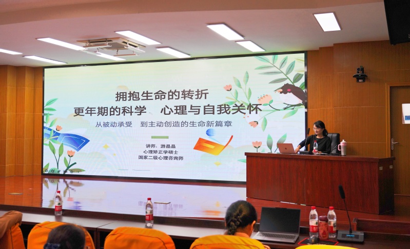 主題講座環(huán)節(jié),專家以《擁抱生命的轉(zhuǎn)折:更年期的科學(xué)、心理與自我關(guān)懷》為題,帶來專業(yè)解讀與分享。講座從科學(xué)角度解讀女性更年期身心變化,重點講授情緒管理與自我關(guān)懷心理工具,幫助女性與變化的自我溫柔和解,將挑戰(zhàn)轉(zhuǎn)化為成長契機(jī),開啟更從容、更有力量的生命新篇章。