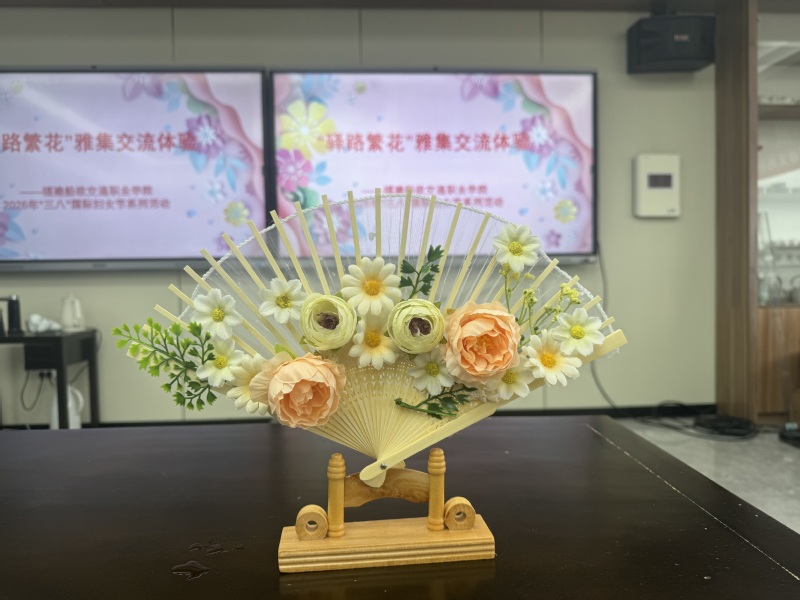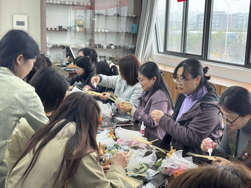 “百六芳華?簪花折扇”DIY 瞬間得到女教職工們的關(guān)注。素扇、仿絨花、纏花材料一一擺開,大家化身手工達(dá)人,凝神構(gòu)思、巧手創(chuàng)作,將一朵朵精致小花綴于扇面,素白折扇變身獨(dú)一無二的專屬藝術(shù)品,指尖生花的同時(shí),更邂逅了傳統(tǒng)美學(xué)的溫柔。