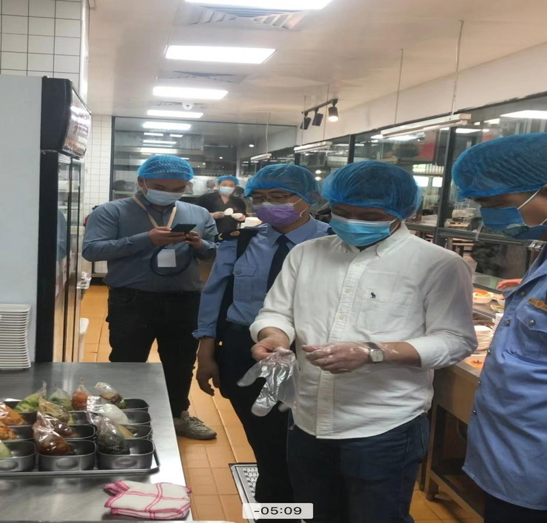 檢查組一行重點檢查了食堂疫情防控管理相關(guān)情況、食品進貨臺賬、員工健康管理、餐品留樣及場所設(shè)備設(shè)施清潔維護等,現(xiàn)場提出了專業(yè)的指導意見。