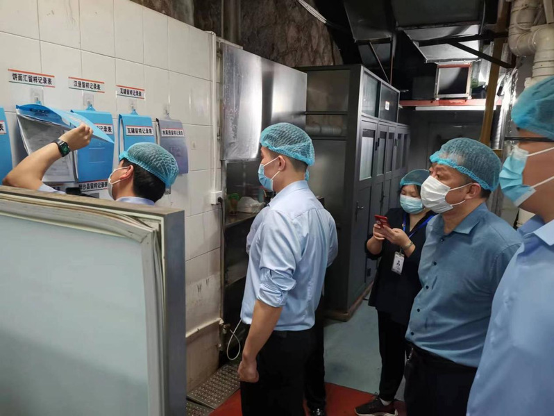 檢查組一行全面檢查了食堂疫情防控管理、食品進(jìn)貨臺賬、員工健康管理、食品留樣、原料控制、加工制作過程、備餐供餐與配送、場所和設(shè)備設(shè)施清潔維護(hù)、餐飲具清洗消毒等。針對檢查發(fā)現(xiàn)的問題,要求立行立改。