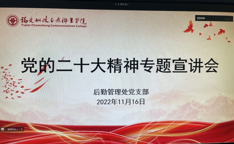 11月16日,后勤管理處黨支部召開黨的二十大精神專題線上宣講會。支部書記??蔀?/span>作宣講報告,報告通過騰訊會議平臺進行,全體支部黨員參加。