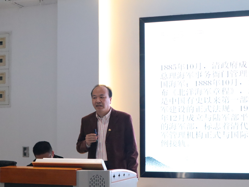 講座中,楊震老師圍繞主題,從船政創(chuàng)辦的背景、船政學(xué)堂對(duì)中國(guó)近代海軍的作用、船政輪船水師的作用、船政精神對(duì)現(xiàn)代的啟示四方面分析了船政與中國(guó)近代海軍的歷史淵源。他詳細(xì)介紹了船政學(xué)堂的辦學(xué)理念與組成部分,講述了船政辦學(xué)的歷史,列舉了鄧世昌等一批船政學(xué)子為國(guó)奮戰(zhàn)的英勇事跡。