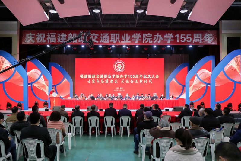 155年風(fēng)雨滄桑,弦歌不輟,155年薪火相傳,勇毅前行。12月23日上午10時,福建船政交通職業(yè)學(xué)院辦學(xué)155周年紀(jì)念大會在學(xué)院文體中心隆重舉行。學(xué)院老領(lǐng)導(dǎo)、各地校友會代表、離退休教師代表蒞臨大會現(xiàn)場。學(xué)院領(lǐng)導(dǎo)班子、學(xué)院合并升格前后的校友們,閩清職專、福建省船舶工程技術(shù)學(xué)校代表、師生員工代表出席大會。紀(jì)念大會設(shè)有主會場及3個分會場,并以線上直播形式同步舉行,九萬余人次通過線上觀看了紀(jì)念大會。