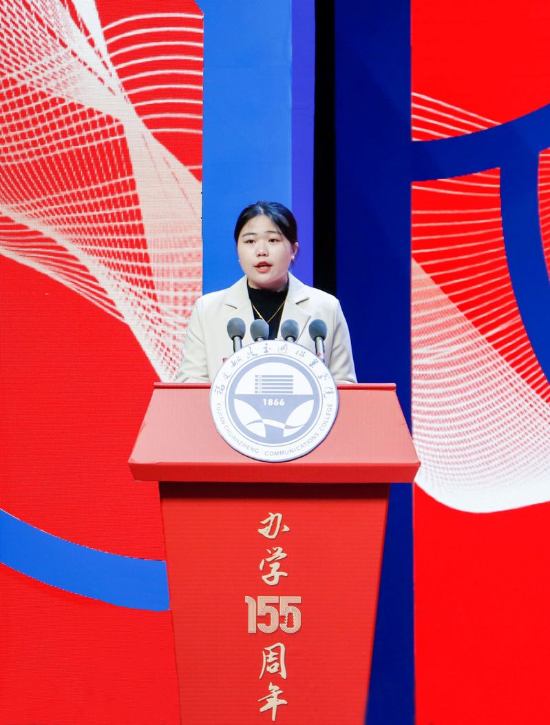 學(xué)生代表王鈺瑩同學(xué)發(fā)言中表達(dá)了對母校的祝福與感謝,并與全體在校生共勉,爭取早日實現(xiàn)“今天我以船政為榮,明日船政以我為榮”。
