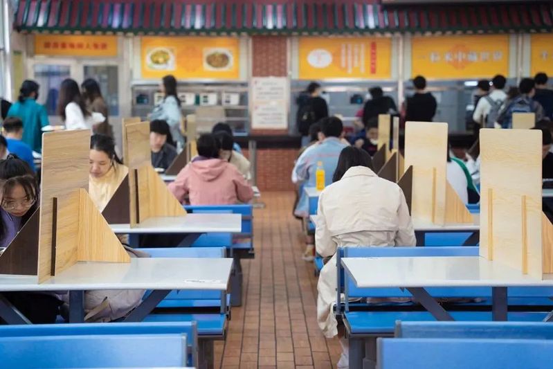 廈大食堂桌面設置隔板保持距離