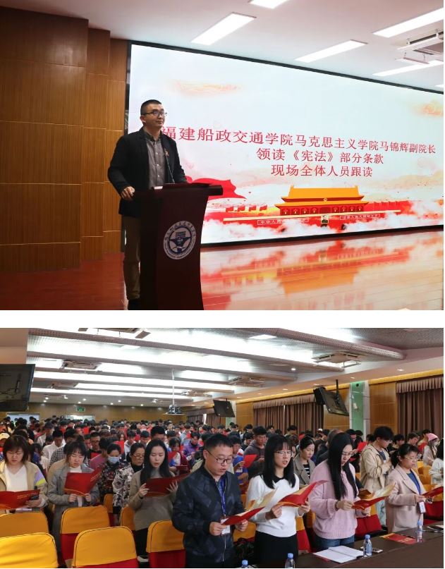 2022年12月4日是第九個(gè)國(guó)家憲法日,也是現(xiàn)行憲法公布施行40周年。福建船政交通職業(yè)學(xué)院圍繞“學(xué)習(xí)宣傳貫徹黨的二十大精神,自覺維護(hù)憲法權(quán)威”活動(dòng)主題,通過組織師生憲法朗誦、舉辦“學(xué)憲法 講憲法”主題演講比賽等方式推動(dòng)憲法教育與學(xué)校教育教學(xué)相結(jié)合,豐富校園法治文化生活,通過建立學(xué)院領(lǐng)導(dǎo)及師生學(xué)法用法制度、建立校內(nèi)爭(zhēng)議解決機(jī)制、建設(shè)法治教育平臺(tái)等措施,努力打造具有特色的普法品牌。