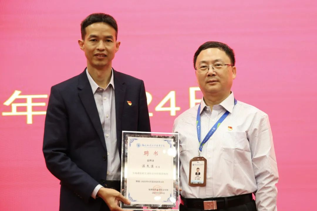 會上,黨委副書記、校長陳錦輝為溫文溪同志頒發(fā)客座教授聘書,并希望能夠加強交流合作,進一步助推學(xué)校高質(zhì)量發(fā)展。