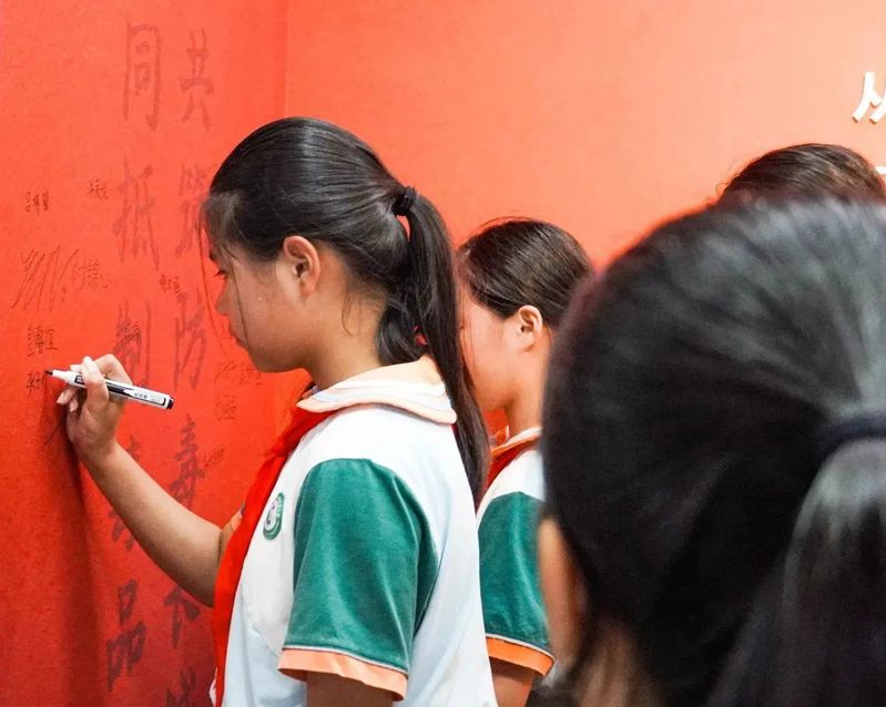 揭牌儀式后,大家在禁毒宣誓墻前莊嚴宣誓,并向師大附小及我院學生代表捐贈禁毒書籍。