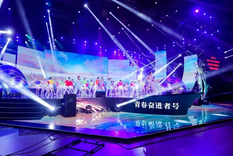 閉幕盛典上,流光溢彩、星光熠熠,趙保樂、施源、郭曉東、藍(lán)盈瑩聯(lián)袂主持,敬一丹、海霞、姚晨、馬少驊、丁柳元、曹磊、侯京健、嚴(yán)當(dāng)當(dāng)、張尕慫、張曉謙、周放、李允兒、張峻寧、秦俊杰、沈夢辰等,與大學(xué)生主創(chuàng)、大學(xué)生演員匯聚一堂,在11個高校方陣2000多名大學(xué)生的現(xiàn)場互動中,在“青春奮進(jìn)者號”巨輪的舞臺效果中,臺上臺下融為一體,共同啟航,迎向未來。