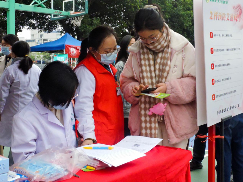 校院兩級紅會組織開展防艾簽名墻、紅絲帶DIY、祈愿手繪等創(chuàng)意游園會,以生動趣味的方式科普、宣傳防艾知識。東升街道衛(wèi)生院現(xiàn)場設(shè)置義診咨詢區(qū),家庭醫(yī)生簽約等宣傳展位,為同學(xué)們提供便民服務(wù)。