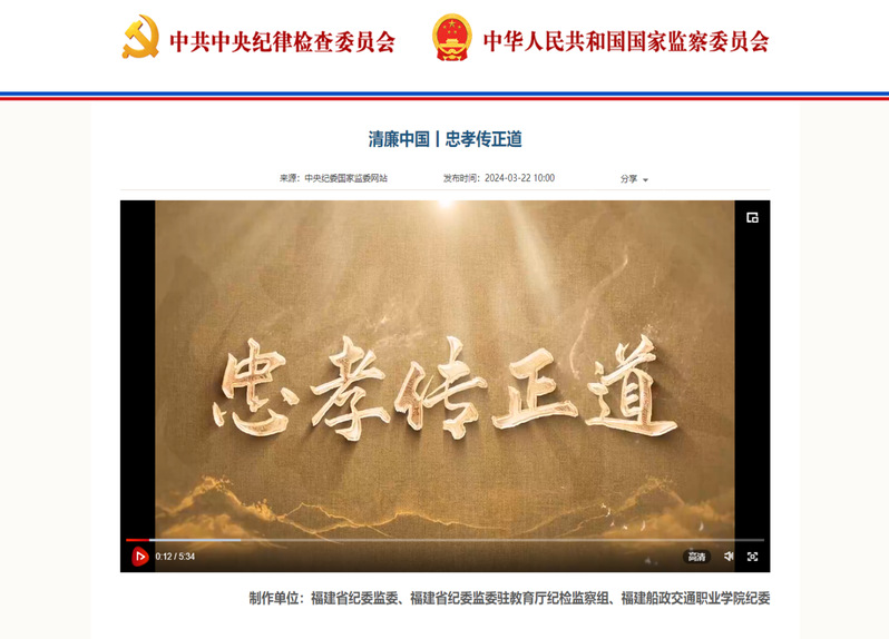 3月22日,中央紀委國家監(jiān)委網(wǎng)站“清廉中國”欄目,刊播嚴復(fù)家風(fēng)家訓(xùn)微視頻《忠孝傳正道》。