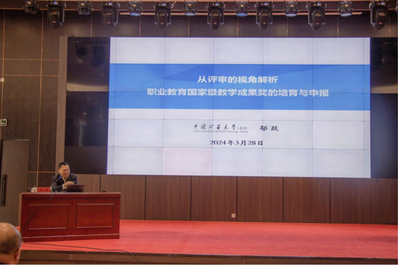 鄔躍作“從評審的視角解析職業(yè)教育國家級教學成果獎的培育與申報”的主題報告