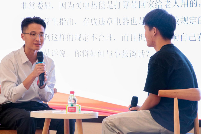 決賽分為案例分享和談心談話兩個環(huán)節(jié),主要考察輔導(dǎo)員對高校日常思政工作中典型案例的分析能力、解決問題的能力以及教育引導(dǎo)學生、理論宣傳闡釋的能力。