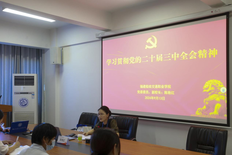 為深入學(xué)習(xí)貫徹黨的二十屆三中全會(huì)精神,推動(dòng)全會(huì)精神入腦入心、落地落實(shí),近日,學(xué)院黨委委員、副院長(zhǎng)陳艷紅在航海學(xué)院校友樓307教室開展黨的二十屆三中全會(huì)精神專題宣講,航海學(xué)院領(lǐng)導(dǎo)班子、 第一黨支部、第五黨支部以及學(xué)生代表參加了宣講會(huì)。