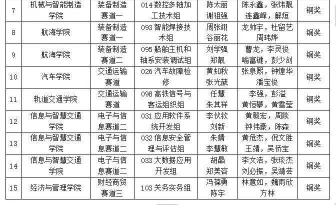在激烈的競賽中,我院學子沉著冷靜,發(fā)揮出色,勇獲佳績。在會計實務、電子商務2個賽項榮獲金獎,在生產(chǎn)事故應急救援、智能飛行器應用技術、智能網(wǎng)聯(lián)汽車技術、機器人系統(tǒng)集成應用技術4個賽項榮獲銀獎,在數(shù)控多軸加工技術、智能焊接技術、船舶主機和軸系安裝調試、汽車故障檢修、高鐵信號與客運組織、應用軟件系統(tǒng)開發(fā)、信息安全管理與評估、大數(shù)據(jù)應用開發(fā)、關務實務9個賽項榮獲銅獎,獲獎數(shù)量位居全省第一。同時受我院邀請,由烏干達工程機械技能培訓中心組成的國際代表隊,在我院汽車學院黃林火老師的指導下,榮獲交通運輸賽道起動系統(tǒng)故障排查小組銅獎。