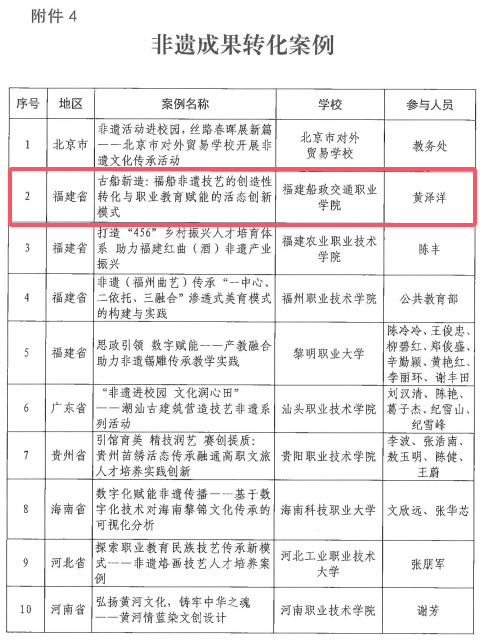 近日,中國職業(yè)技術教育學會發(fā)布《關于公布職業(yè)教育“立德樹人”、解決產(chǎn)業(yè)發(fā)展問題、“職教出海”、非遺成果轉(zhuǎn)化案例名單的通知》,我院報送的《燈塔型航海人才“技能+素養(yǎng)”雙適任育訓范式創(chuàng)新實踐》《古船新造:福船非遺技藝的創(chuàng)造性轉(zhuǎn)化與職業(yè)教育賦能的活態(tài)創(chuàng)新模式》分別入選“立德樹人”和“非遺成果轉(zhuǎn)化”典型案例。