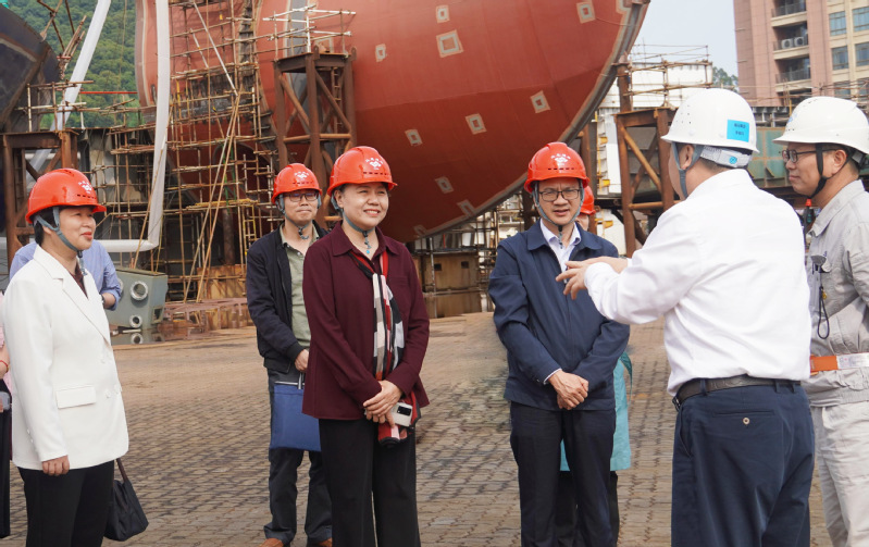 調(diào)研期間,學(xué)院一行深入福船集團(tuán)生產(chǎn)廠區(qū)、船政企業(yè)文化展館,實地考察聯(lián)合車間、船塢、碼頭生產(chǎn)運(yùn)營情況,了解船舶建造工藝及企業(yè)文化建設(shè)成果。