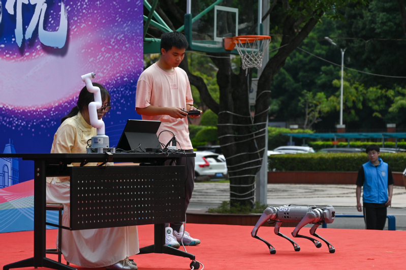 《機械狗、機械臂展示》節(jié)目中,機械狗作為當(dāng)代人工智能的代表產(chǎn)品,在設(shè)定的操作指令下,動作精準(zhǔn)流暢,讓師生近距離感受AI技術(shù)的魅力與無限可能。